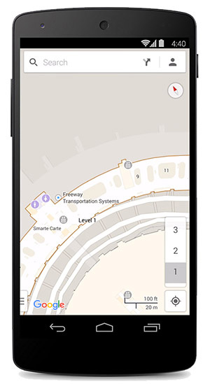 С Google Вътрешни карти посетителите могат да спестят време от търсенето на указатели на сгради и да го използват за откриване на нови обекти. Трябва само да увеличите мащаба на сградата и да минавате от етаж на етаж с вътрешните карти.
